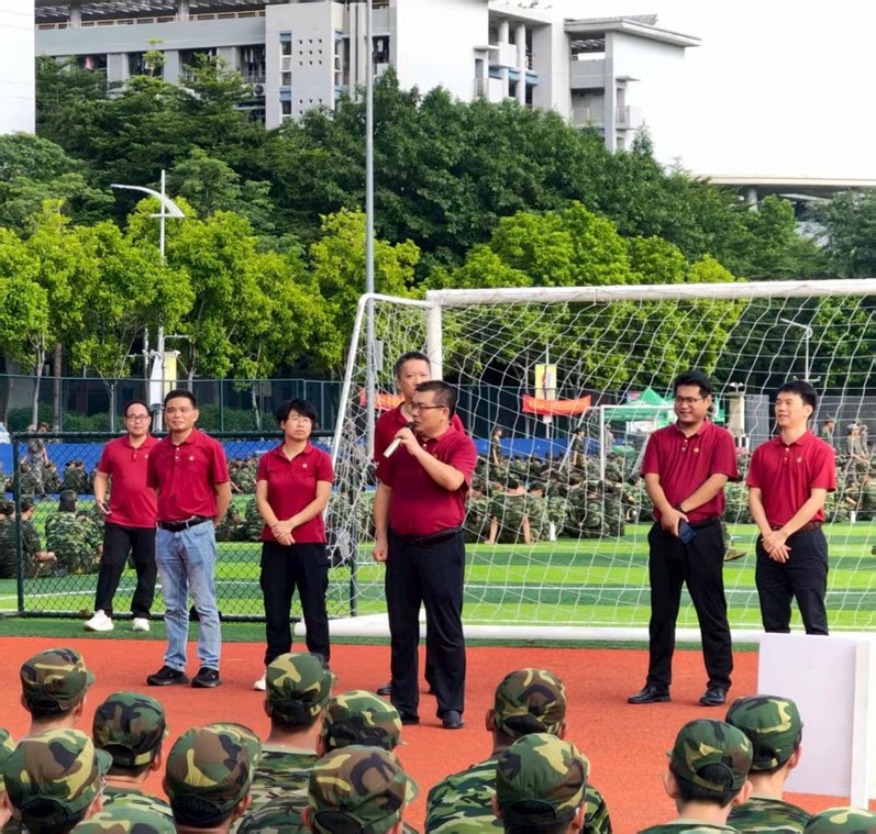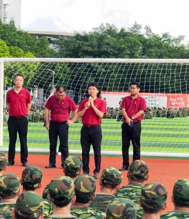徐振林院长分享自己学生时期军训经历,亲切地询问大家的训练感受和生活情况。同时他勉励同学们珍惜军训时光,在刻苦训练中增强国防观念和锤炼过硬作风,将收获的勇气与毅力融入今后的学习生活,努力成长为有理想、有担当的时代新人。