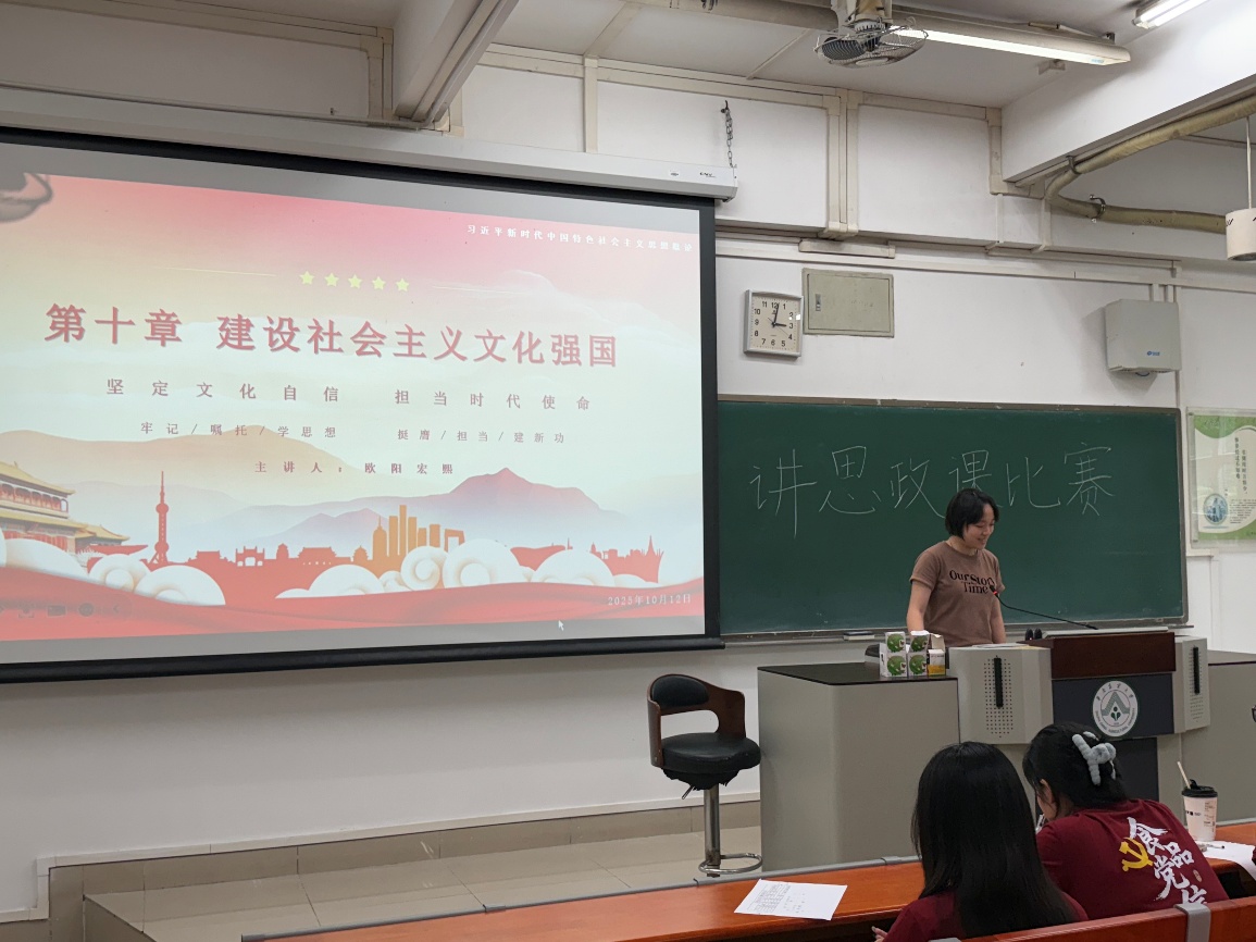 第四组的课程为《建设社会主义现代化强国》,讲解人欧阳宏熙带我们深入理解文化自信的内涵,解析如何在新时代践行文化担当,让“建设文化强国”的理论落地有声。通过清晰的逻辑架构和贴近时代的案例,引导大家理解文化自信对国家发展、民族复兴的重要意义,为思政课注入文化底蕴与时代活力。
