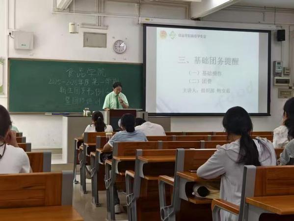 为顺利开展本学期新生团组织建设工作,进一步激发团支部活力,充分发挥团支部委员会的引领作用,食品学院于2025年10月15日在5B303教室召开了2025-2026年度第一学期新生团支书例会暨团校培训。食品学院团委组织部的工作人员及各新生班级团支委共同参加本次会议。