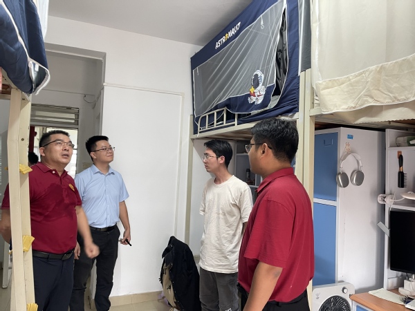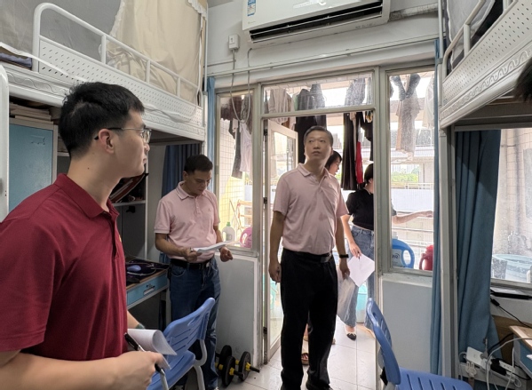 学院领导来到我院启林南、燕山社区学生宿舍,就室内积水清理、垃圾下楼和内务卫生等方面展开检查,重点排查阳台、卫生间、走廊等易积水位置。针对部分宿舍存在的问题,现场提出整改意见。同学们积极响应,并承诺将按照要求立即整改,共同维护良好宿舍环境。