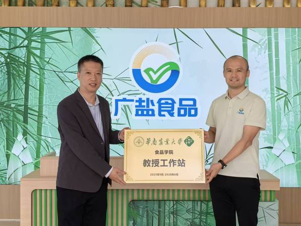 基于合作共识,华南农业大学食品学院在广盐食品正式设立“教授工作站”。该平台将推动科研资源与企业需求高效对接,加速技术创新与成果转化,深化“产学研用”融合。
