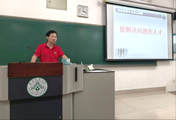 除了来自企业的产业导师,11月,学院退休教授、包装行业知名专家张钦发教授的分享则为同学们搭建起“个人成长与行业发展”的桥梁。拥有30多年包装教育科研和产业服务经验的张老师,结合人工智能背景,系统阐述了“成为优秀包装工程师的必备素养”。他强调,在AI技术广泛应用的今天,包装工程师既要夯实包装系统设计、材料科学等专业基础,又要掌握数据分析、智能设计等新兴技能;既要具备全球视野,关注国际行业标准,又要坚守严谨务实的职业态度。“技术可以辅助设计,但解决问题的核心能力和职业责任感,才是立足行业的根本”,张老师语重心长的叮嘱,让同学们对“职业素养”有了更深刻的理解。