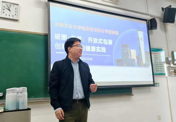 在营养健康产品包装领域,开放式创新模式正成为行业发展的新引擎。12月,美赞臣包装研发总监、广东省包装技术协会副会长李总带来的“开放式包装创新模式的健康实践”报告,为同学们打开了全新的视野。他结合美赞臣在包装研发中的亲身经历,详细介绍了开放式创新模式的理论背景——通过整合企业内部资源与外部科研机构、消费者需求,构建多元化的创新生态。从高端化婴幼儿营养包装创新,到童趣化儿童营养包装创新,再到适老化中老年营养包装创新,李总用一个个鲜活案例诠释了“包装创新始终以消费者需求为核心”。他预测,未来营养健康食品包装将朝着“智能化、个性化、绿色化”方向发展,呼吁同学们关注跨学科知识融合,培养创新思维。