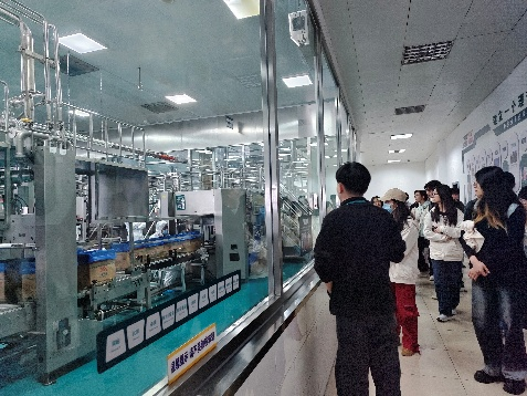 参观队伍深入核心生产区域。在智能化包装车间,同学们亲眼目睹了高度自动化、洁净化的生产流程,从灌装、封盖、贴标到装箱、码垛,高效有序的现代化生产线展现了食品工业的高标准与严要求。在油脂检测中心,精密的分析仪器、严格的质量监控流程以及技术人员严谨细致的工作态度,让同学们深刻体会到食品安全与品质控制在企业生产中的核心地位。
