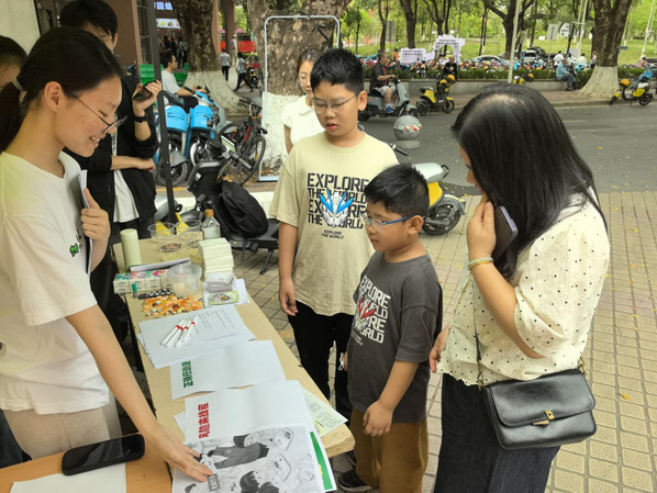 活动当天,现场设置了多个互动游戏,让食品安全知识“活”起来。在“谣言粉碎机”环节,一面贴满谣言纸条的“谣言墙”前围满了居民。“不含防腐剂的食品更安全”“预制菜都是垃圾食品”……居民们争相撕下谣言,投入“谣言粉碎箱”。青马班成员在一旁耐心讲解:“合规食品添加剂是安全的,正规预制菜也需符合国标,不必过度恐慌。”