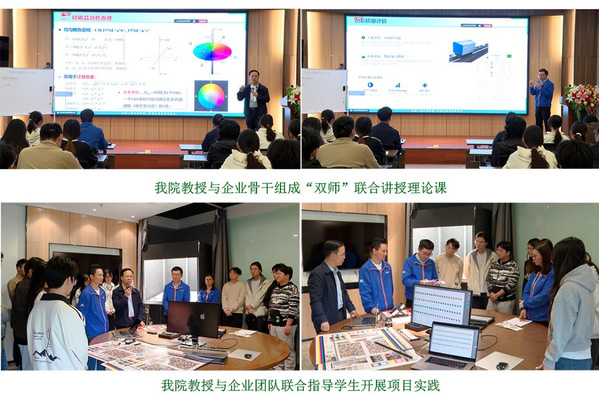作为集印刷包装研发、设计、生产、销售于一体的综合性上市企业,中荣股份深耕行业近四十余年,拥有完善的人才培养体系和先进的生产技术,是开展产教融合实践教学的优质平台。教学活动伊始,我院范小平教授团队联合中荣股份产业教师组成“双师”教学团队,围绕“包装印刷品色彩测控基础与方法”开展专题理论授课。课堂上,校内教师侧重讲授色彩科学理论与基础原理,结合印刷包装色彩管理的核心要求,为学生筑牢理论根基;产业教师则结合企业生产实际,分享色彩测控在食品、快速消费品、消费电子包装等领域的应用要点,解读行业对色彩一致性、准确性的严苛标准,让抽象的理论知识变得具象可感。