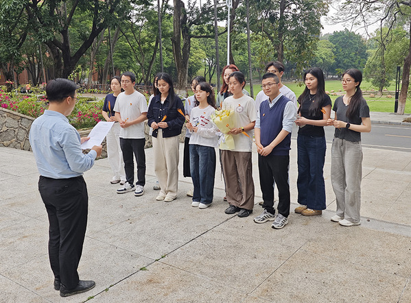2026年清明前夕,我院食品加工与包装教工党支部支委携包装工程研究生党支部支委、食品工程研究生第三党支部支委,前往第一教学大楼丁颖教授雕像前,联合举行缅怀丁颖教授活动。此次教工支部与研究生支部联合开展活动,既是对先贤的深切追思,更是搭建起师生党员思想传承的桥梁,推动丁颖精神在师生间薪火相传。