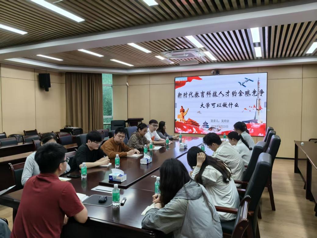 座谈会上,吴绍宗老师结合丰富的国内外学习工作经历,以“新时代教育科技人才的全球竞争”为切入点,从时代挑战、人才画像、大学作为三个维度,系统分析全球高层次科技人才格局变化、国家战略需求以及高校人才培养的重要使命。他强调,面对日趋激烈的国际科技竞争,青年学生要坚定理想信念,立足专业主业,锤炼综合素养,勇担时代使命,争做新时代青年先锋。