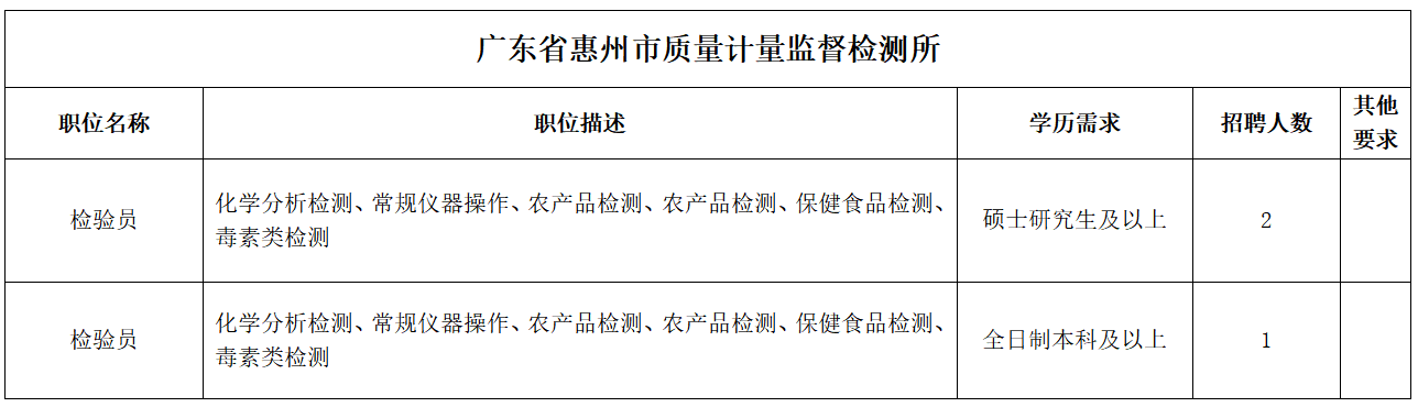 惠州市质计所检测能力覆盖食品、轻工、化工、建材、纺织品、电子机械等产品质量检验,以及长度、力学、电磁、无线电、热工、理化、声学、时间频率、电磁辐射、光学等十大类计量器具的检定和校准。